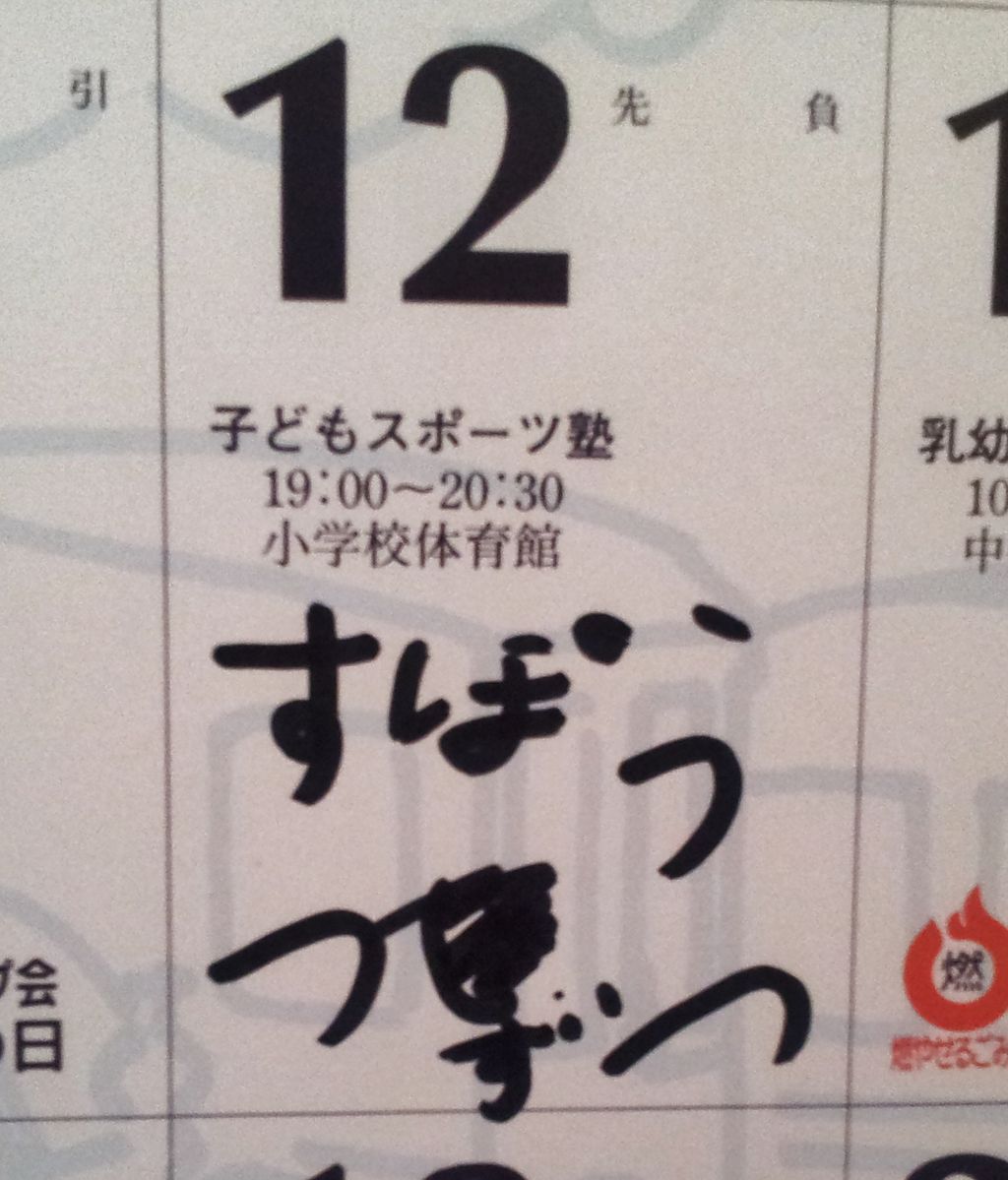 「ねー、おとうさん、カレンダーにスポーツじゅくってかいていい??」