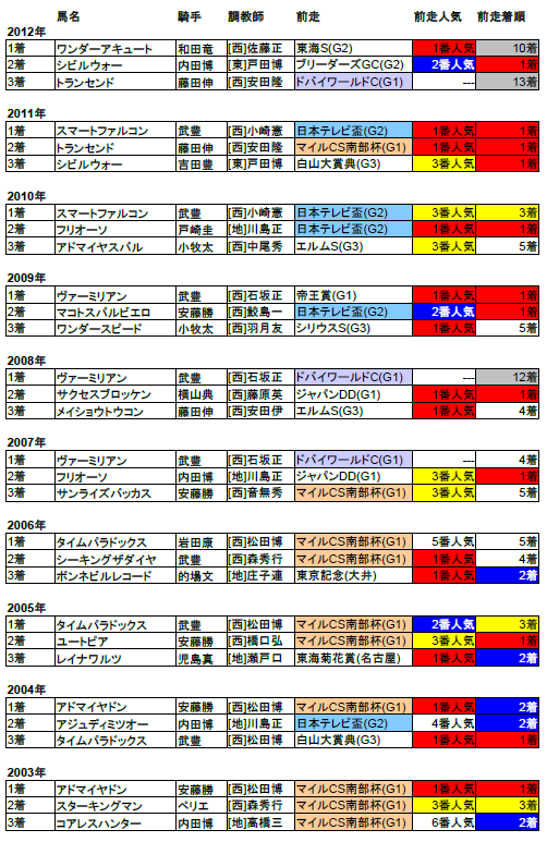 特に前走3番人気以内且つ3着以内だった馬が中心。