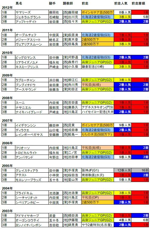 全日本2歳優駿 2013/前走データ