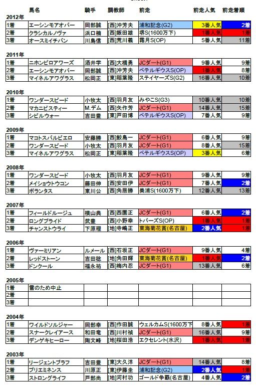 名古屋グランプリ 2013/前走着順データ