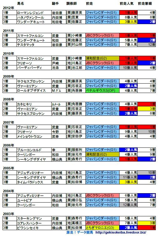 前走JBCクラシックのローテからは4頭が連対。