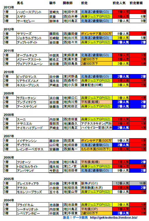 ローテ別では兵庫ジュニアGP、北海道2歳優駿が中心。