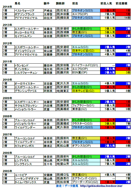 特に前走連対馬が良い傾向で勝ち馬10頭中9頭が