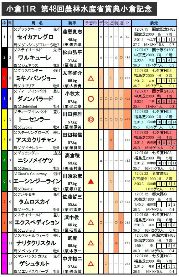 第61回農林水産省賞典小倉記念(G3)小倉芝2000m 3歳以上 ハンデ